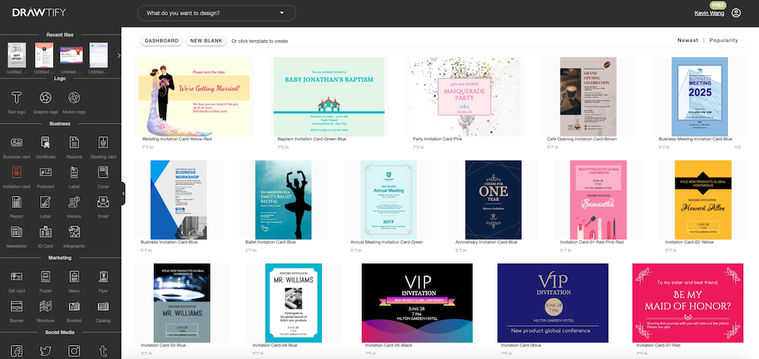 Drawtify is a free online invitation card maker. It not only provides a large number of invitation card templates but also has rich built-in design functions. Therefore, Drawtify will be the best choice for making invitation cards online.